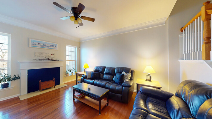 Welcome to this stunning 3-story townhouse in the desirable Brighton Green community of Newburgh. Step inside this pristine property and be greeted by 9-foot ceilings, detailed moldings, and gleaming hardwood floors throughout the main floor. The spacious living room boasts a cozy gas fireplace and large windows offering beautiful views of the surrounding woods. The formal dining room features elegant crown and chair moldings, perfect for hosting dinner parties. The kitchen is a chef's dream with a gas range, oven, dishwasher, microwave, refrigerator, and plenty of cabinetry for storage. Step outside onto the rear deck and enjoy the peaceful scenery. Upstairs, you'll find the master bedroom with a walk-in closet and en-suite bathroom complete with a dual vanity, soaking tub, and shower. Two additional bedrooms with large closets, a full bathroom, and laundry room complete the second floor. The finished basement offers even more living space with a family room, office/den, full bathroom, and storage room. Enjoy the clubhouse with a fitness area, pool, and tot lot. Conveniently located near major highways, shopping, dining, and recreational activities, this home has it all.