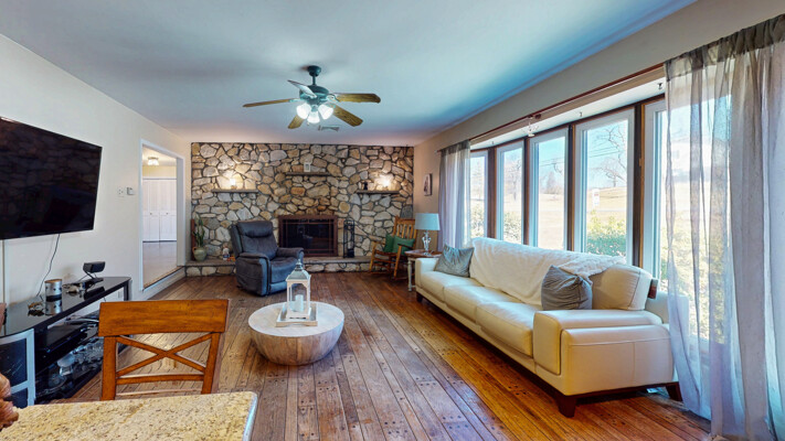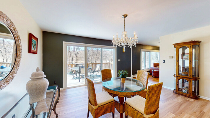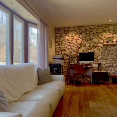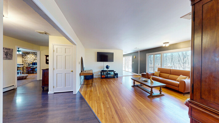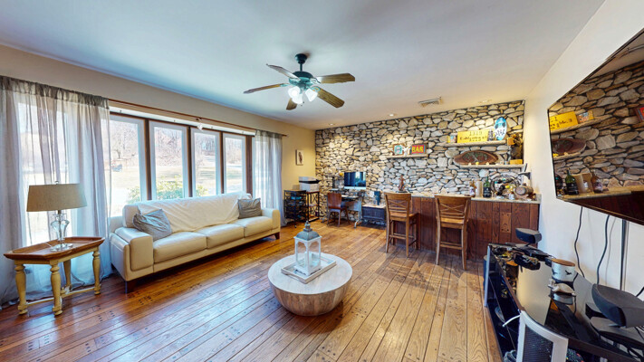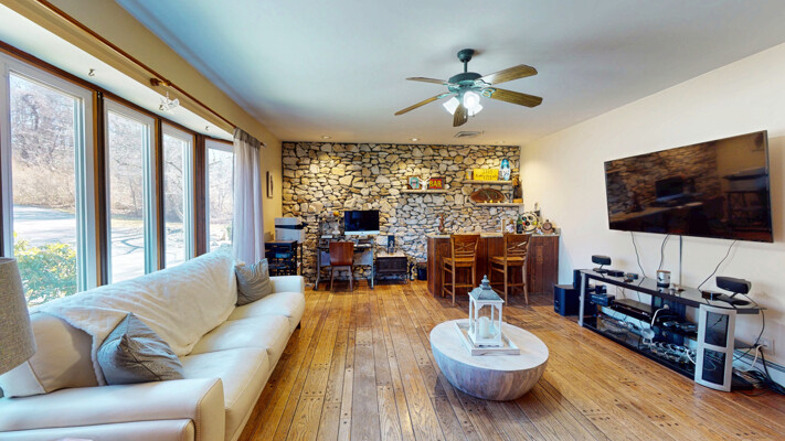 Walk into the large foyer which can lead you in all directions. Large kitchen with lots of cabinets and counter space. Take one step down into the family room with stone walled fireplace and built in bar. The living room overlooks private acreage. Master Bedroom with full bath & walk-in closet, two more large bedrooms and full main bath plus laundry room all on first level. Lots of natural light through the large windows in every room. Downstairs is a full accessory apartment/in-law suite with a Bedroom, Full handicapped accessible bathroom, kitchen, family room, office & a sliding door that walks out to the rear of the house. Also has a large storge area with a walk-out. Enjoy summers lounging around the built in pool. Close to hiking trail, winery's, State parks, NYC transportation and so much more.